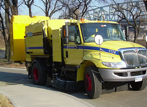 Roadway sweeper truck uses cleaner bio-diesel fuel, as do all heavy-duty service vehicles in the agency's Fleet.